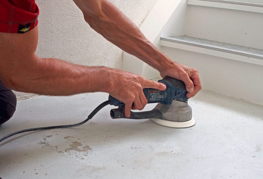 Glatt med en bred spartel etter noen minutter (avhengig av hvor mye underlaget suger). Målet er å oppnå en helhetlig, jevn overflate.
