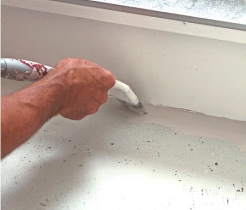 Tett alle hull og sprekker med en malbar gummifugemasse når heftgrunningen er tørr. Glatt fugen med en fugebrikke, slik at den ikke er synlig.