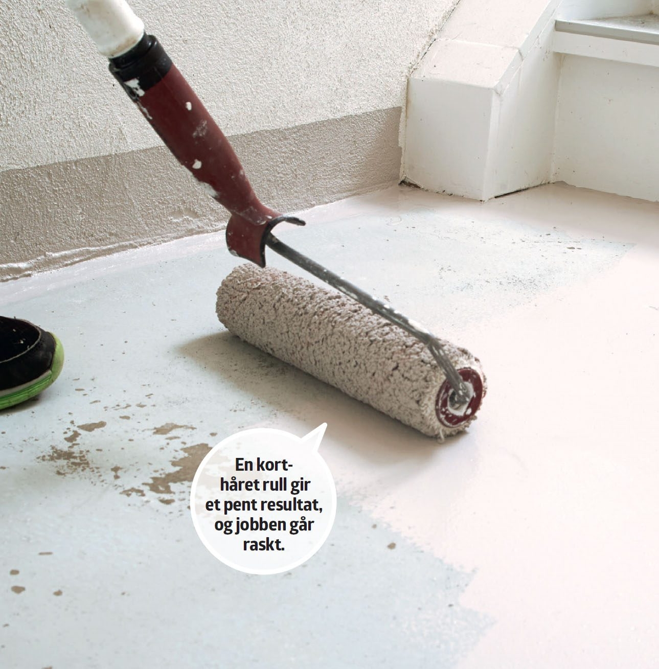 Mal først kantene langs vegger og trapper. Vi har valgt en tokomponent, vannbasert epoksymaling (skal brukes i løpet av én time).