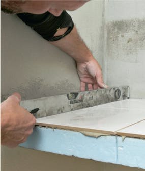 Fliser limes på forkant og vegg