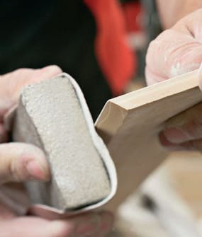 Kantene på alle listene retter vi med en høvel. Du kan også fjerne de sårbare skarpe hjørnene med overfres eller slipepapir, men et enkelt strøk med høvelen gir deg raskt en perfekt skrå kant (fas).