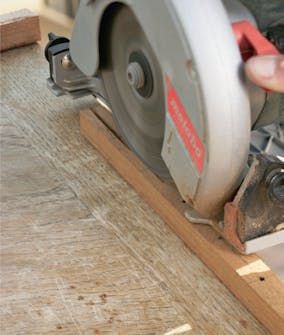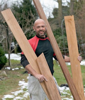 Vi holder prisen nede og kvaliteten på topp ved å dele opp gamle teakbord i lister på 21 x 21 mm med en bord-sirkelsag, men du kan fint bruke furu med samme mål.