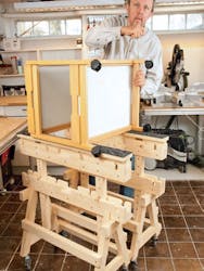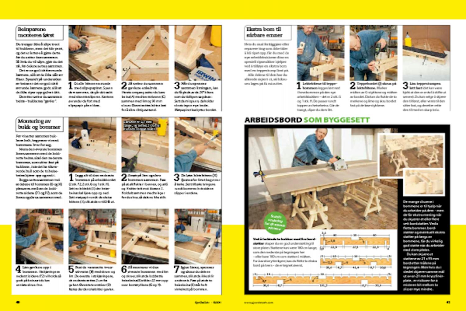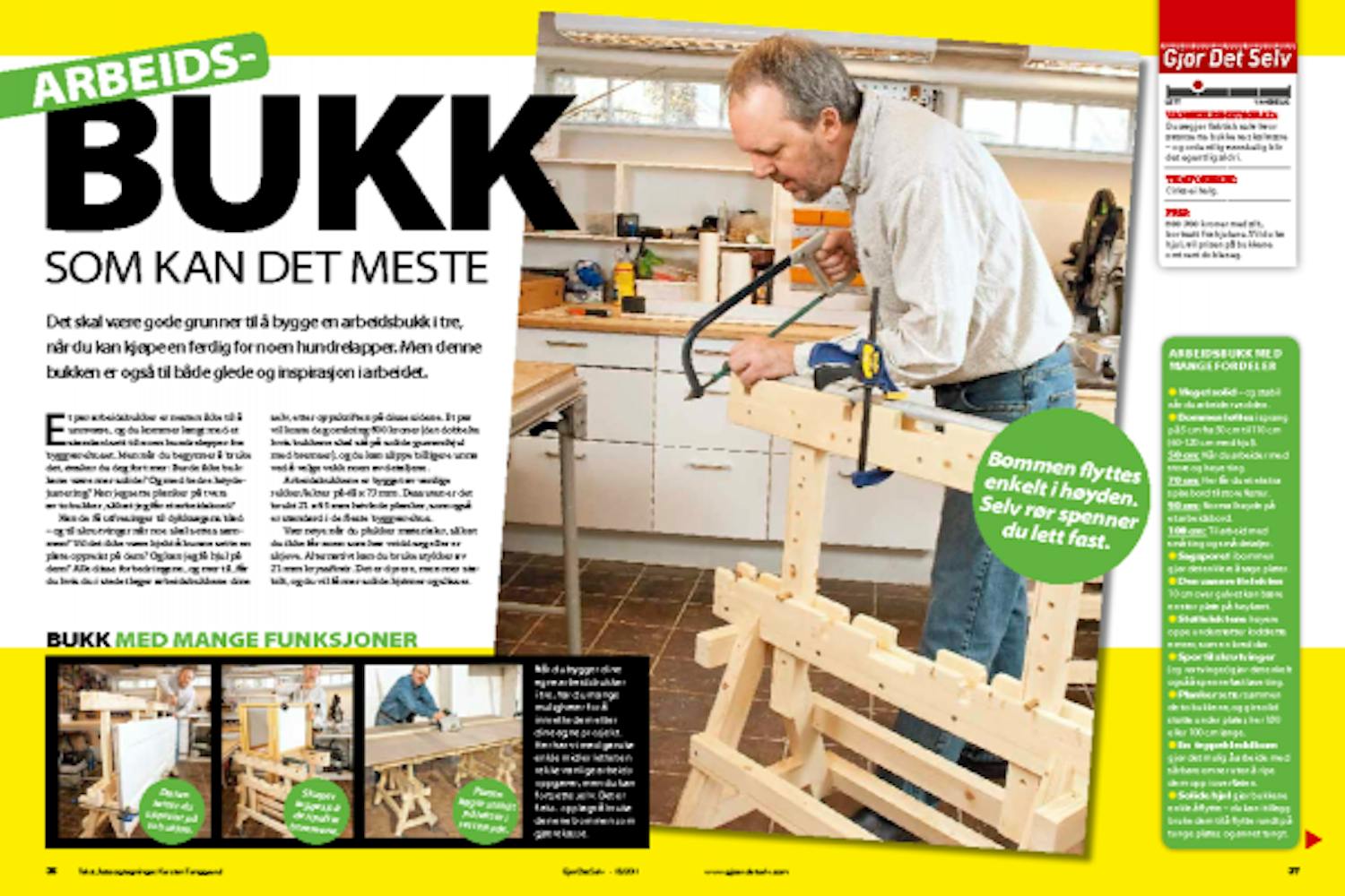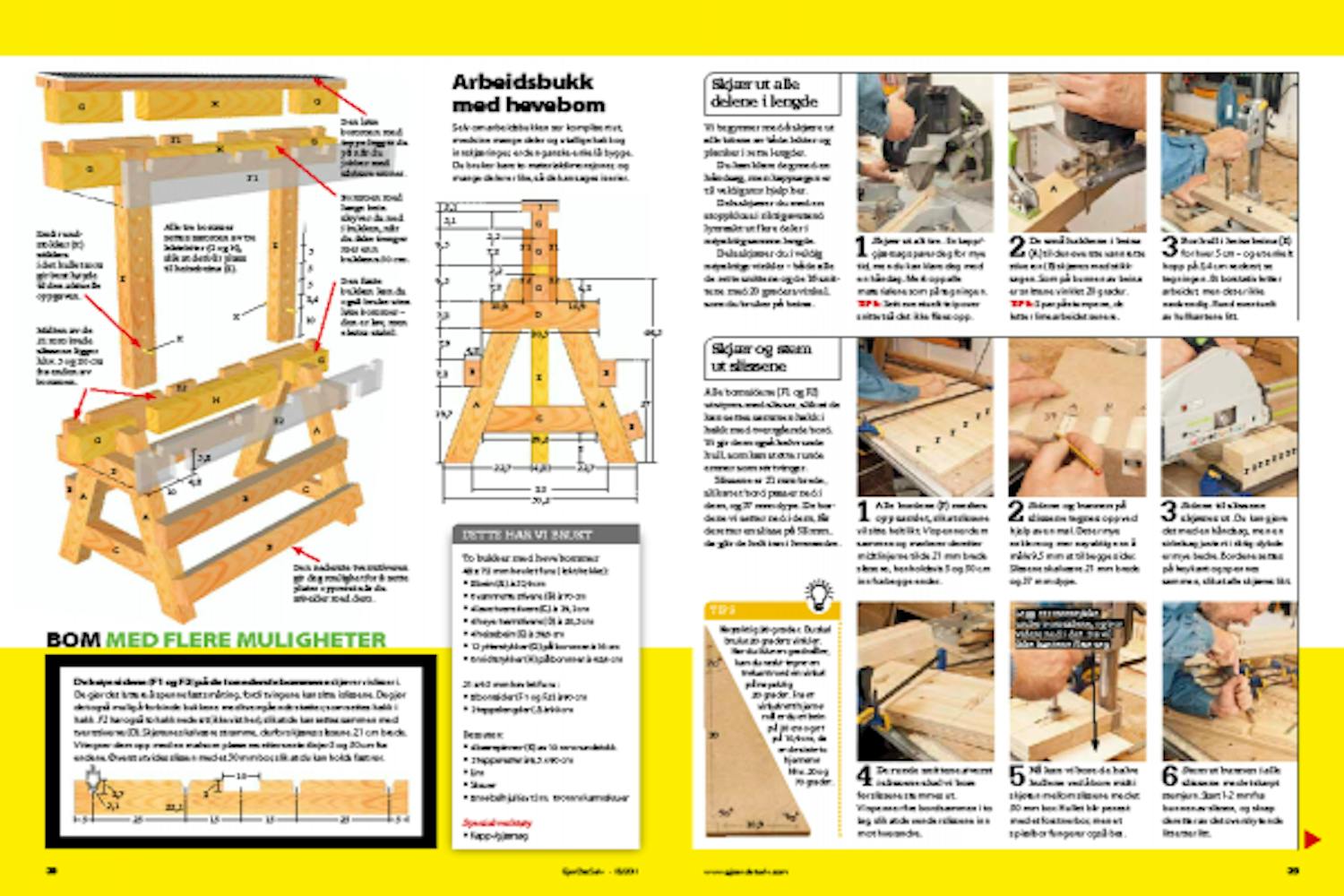 Når du bygger dine egne arbeidsbukker i tre, har du mange muligheter for å innrette dem etter dine egne prosjekt. Her har vi med ganske enkle midler lettet en rekke vanlige arbeidsoppgaver, men du kan fortsette selv. Det er f.eks. opplagt å bruke den ene bommen som gjærekasse.