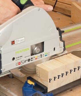 Dels skjærer du med en stoppkloss i riktig avstand lynraskt ut flere deler i nøyaktig samme lengde.