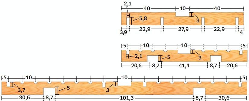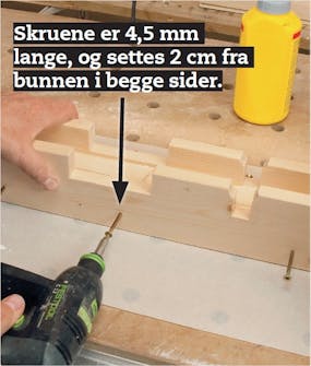 Slissene er 21 mm brede, slik at et bord passer ned i dem, og 37 mm dype. De bordene vi setter ned i dem, får deretter en slisse på 58 mm, da glir de helt inn i hverandre.