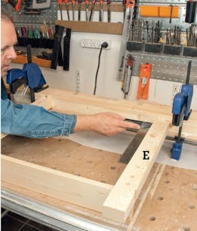 Skjær ut alt tre. En kapp/-gjærsag sparer deg for mye tid, men du kan klare deg med en håndag. Merk opp alle materialene som på tegningen. TIPS: Sett eventuelt teip over snittet så det ikke flises opp.