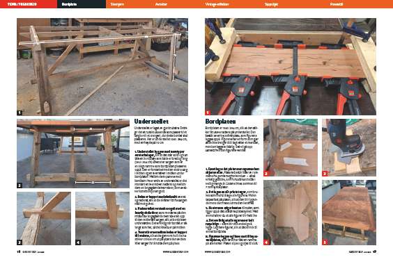 Understellet forsterkes også med en kraftig skråstiver, som monteres på den midterste langsgående tverrstiveren opp til den midterste sargen, slik at bordplaten understøttes. Det er viktig når bordet er så langt som her, så det ikke buer på midten.