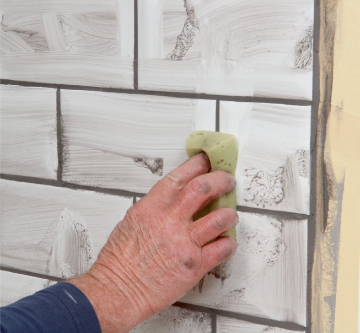 Fjern overskytende mørtel med et fuktig skumgummibrett. Brettet dyppes ofte i rent vann. Etter dyppingen kjøres det over en valse, slik at brettet ikke er for vått når flisene vaskes rene.