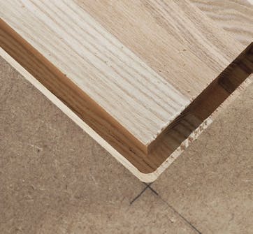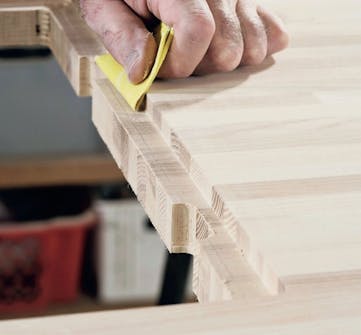 Slip kanten lett. Fresingen etterlater litt “freseskjegg” i endeveden. Dette er enkelt å fjerne med slipepapir.