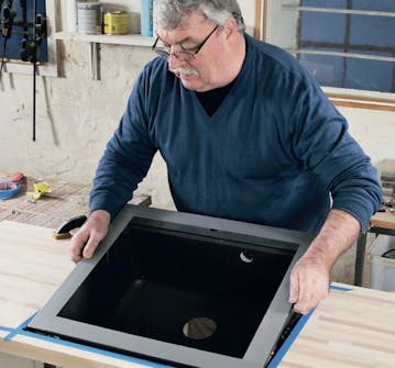 Nå kan du fjerne benkeplatestykket. Med litt forsiktighet, kan platen legges rett på et arbeidsbord. Ellers kan du klosse den opp. Husk bare at underlaget skal være stabilt.