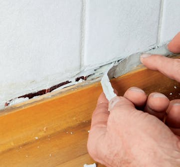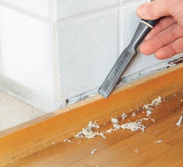 Ikke bruk tid på å lappe på den eksisterende fugen. Det kommer det ikke noe godt ut av. Fjern i stedet den gamle, ødelagte helt, og lag en ny, flott gummifuge.