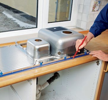 Det er viktig at du er nøye når du måler opp til den nye vasken, slik at hullet ikke blir for stort. Den letteste metoden er å legge vasken med bunnen i været over det eksisterende hullet og streke opp rundt kanten.
