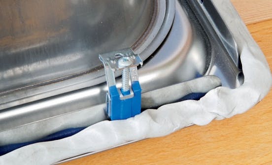 I dag er mange vasker laget med en tetningslist av silikongummi for at vasken skal holde tett mot benkeplaten. Har ikke vasken din en slik tetningslist, bør du bruke sanitetskitt. Det rulles på som en pølse og trykkes fast rundt kanten på vasken. Når vasken spennes fast, presses det overflødige kittet ut mellom vasken og benken. Det skal du fjerne uten å ripe benken.