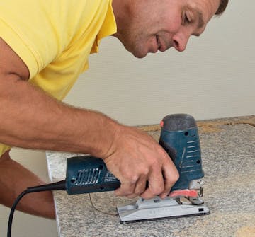 Skjær ut etter oppstrekingen. Bruk en stikksag med et skarpt blad. Husk å holde en hånd under platen, slik at ikke avskjæringen brekker ned i skapet.