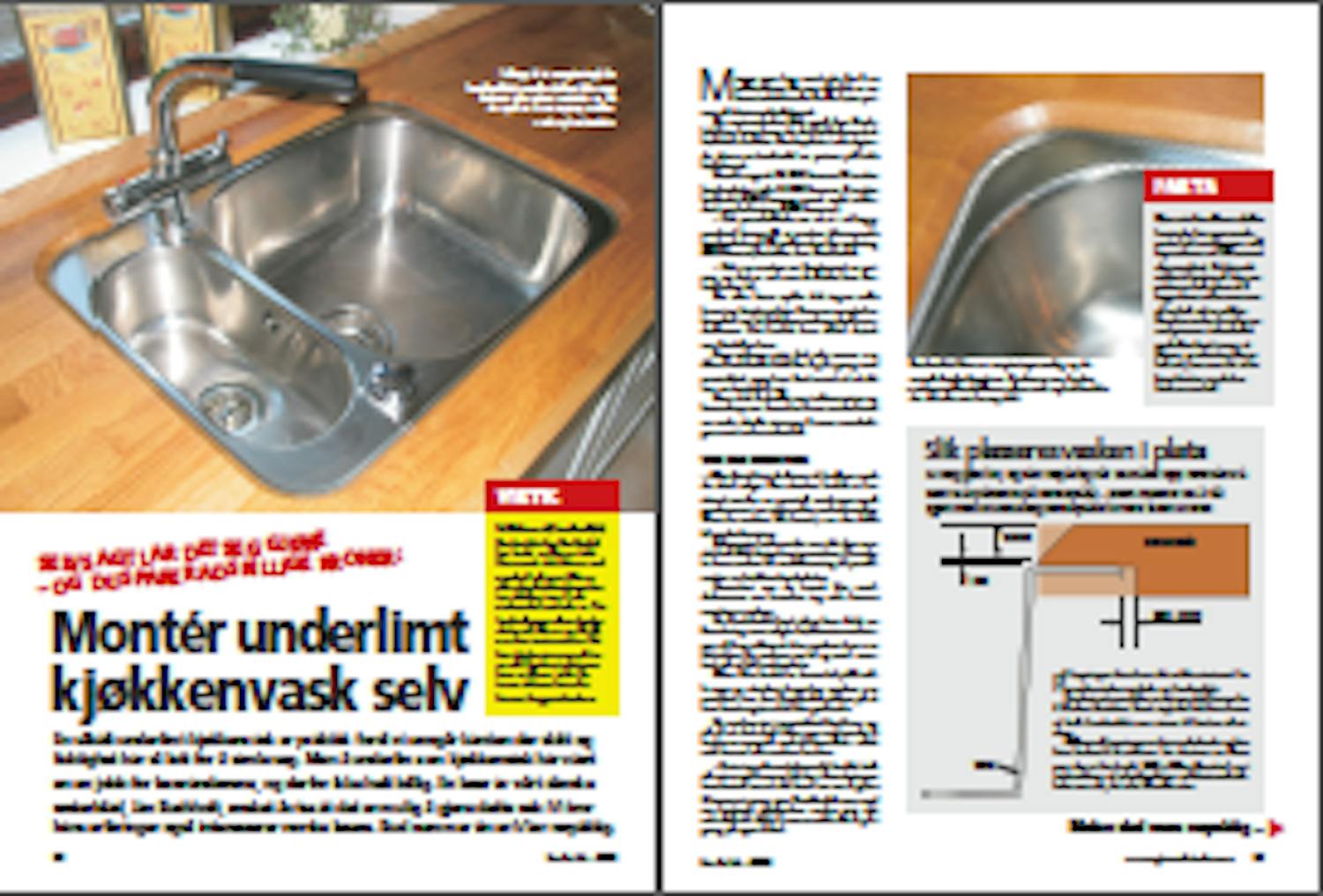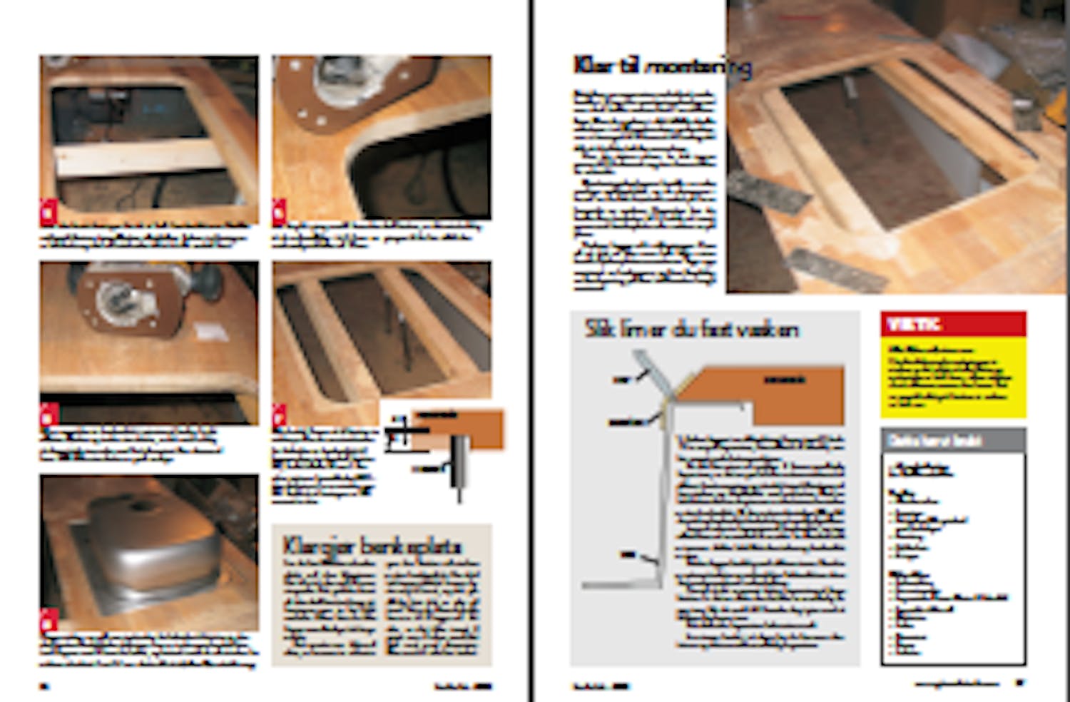 Malen til Jan Buchholdts prosjekt er laget av 10 mm sponplate, men du kan også bruke andre treplater - MDF eller hard kryssfinér. Plata skal bare være et par millimeter tykkere enn den avstanden som kopiringen din stikker nedenfor anleggsplata på fresen. Aller først må du finne ut hvor benkeplata skal møte vasken. Deretter må du måle opp vasken og finne målene på hullet som vasken skal monteres i. Er vasken todelt - det vil si med både et høyre og venstre «basseng» - må du huske å snu vasken riktig.