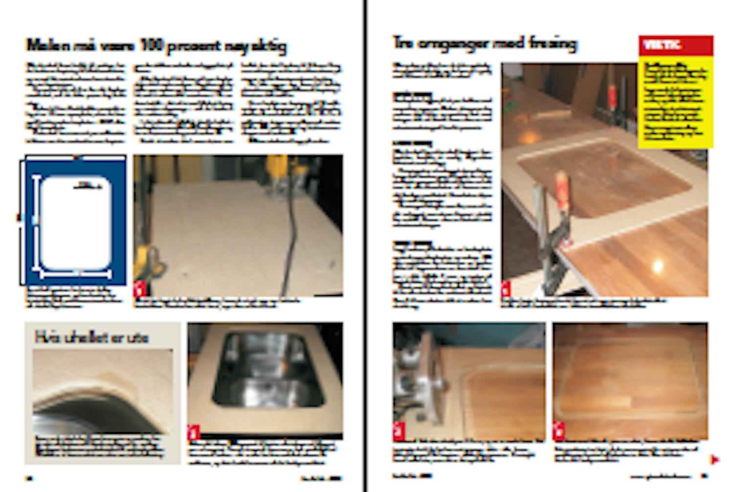Når du skal frese hullet til vasken, bør du bruke en kopiring til håndoverfresen, og en mal (et mønster) som kan styre fresen via kopiringen. Da malen har alt å si for det ferdige resultatet, må du ikke prøve deg fram uten.