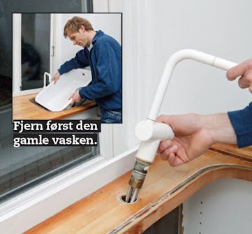 Fjern blandebatteriet og den gamle vasken. I forkant skal du huske å stenge for vannet. Lukk også for ventiler, og demonter rørene til blandebatteriet. Vent med å avmontere blandebatteriet til du har fjernet vasken.