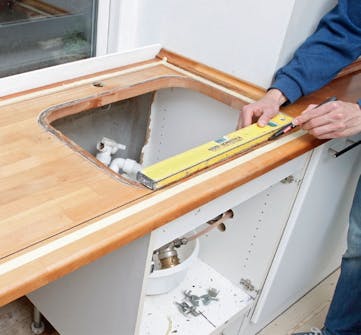 Pass på at du ikke lager et for stort hull til vasken. Ellers er det en ganske enkel oppgave.