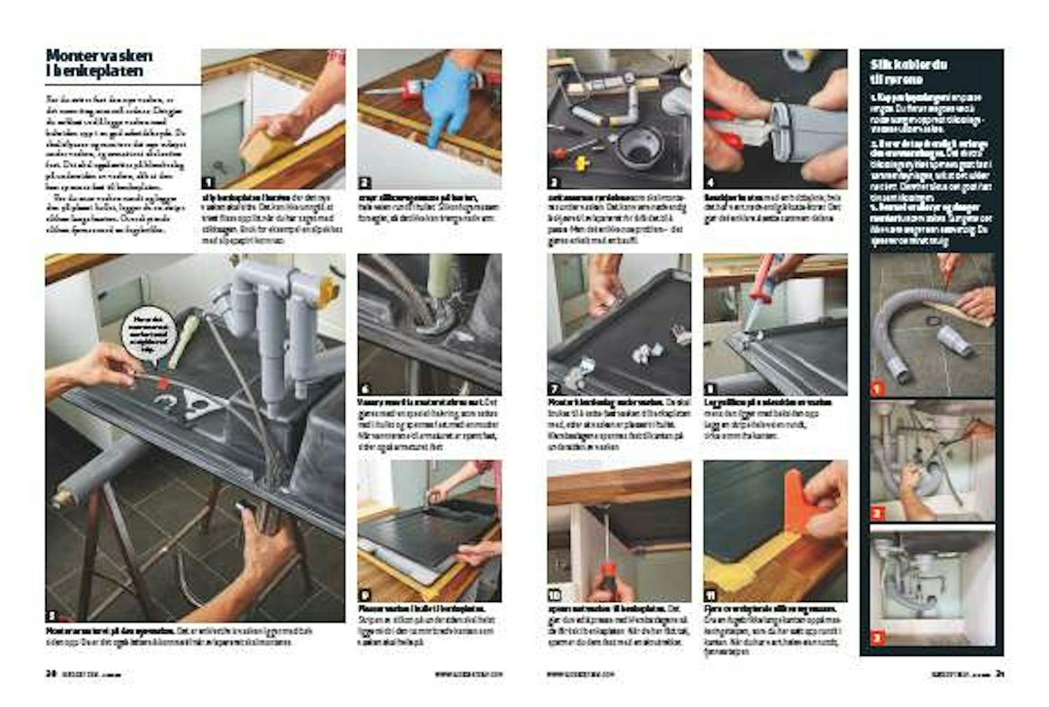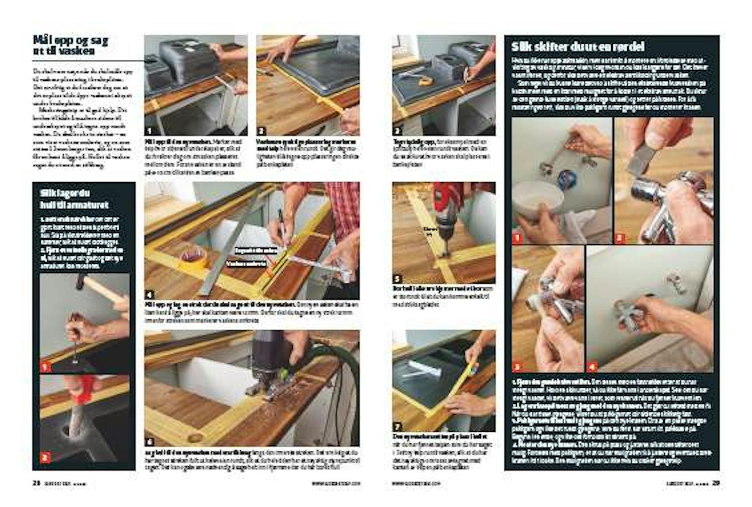 Det er ikke vanskelig å skifte en vask. Men du skal være nøye med oppmålingen, slik at du ikke risikerer å sage feil i benkeplaten.