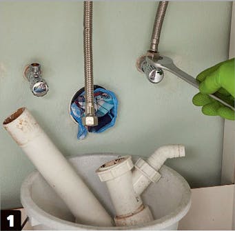 Steng vannet, fjern det gamle avløpet og skru av rørene til blandebatteriet. Er det kuleventiler er dette enkelt. Hvis ikke, må du plugge rørene midlertidig igjen eller holde vannet stengt mens du holder på.