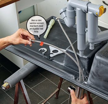 Hvis du ikke har oppvaskmaskin, men har tenkt å montere en i forbindelse med utskifting av vask og armatur, viser vi deg hvordan du kan klargjøre for det. Det krever vanntilførsel, og derfor skal det være en ekstra vanntilkobling under vasken.
