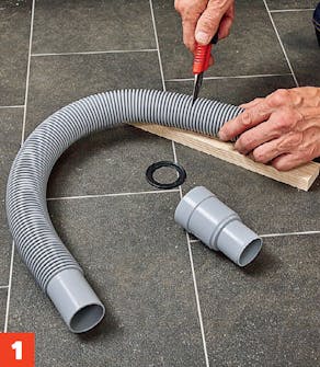 Kapp avløpsslangen i en passe lengde. Du finner lengden ved å holde slangen opp mot tilkoblingsstedene under vasken.