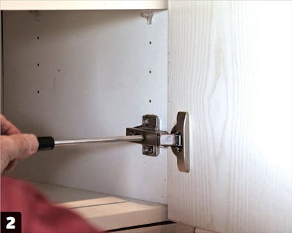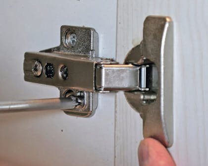 Gaper døren i hengselsiden, er det heldigvis råd å hente. Ved å løsne den innerste skruen med en stjerneskrutrekker kan du skyve døren på plass og redusere åpningen. Deretter er det bare å trekke til skruen igjen.