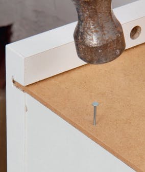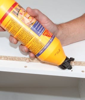 Mange fabrikater bruker spesielle skruer, som gir godt feste i sponplater. Skapene her settes sammen med vanlige skruer og plugger. Det gir pene, rene flater, og vi øker i stedet styrken med lim.