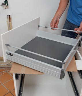 Skuffene er også raske å skyve inn i beslagene. Fikk du ikke skrudd dem fast på de løse sidene, må du klemme deg inn og sette dem på nå.