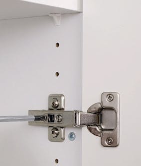 Dørene skal bare skrus fast i hullene som er ferdigboret i både dører og skapsider.