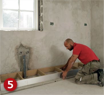 Når du skal lage sokkelen, har du flere muligheter å velge mellom. Det avgjørende er at sokkelen er 100 prosent vannrett på både lang-og kortsiden når du er ferdig - i tillegg må den tette pent mot gulvet.