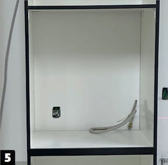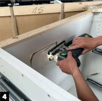 Finn ut hvilke skap du skal lage hull i, for eksempel til strøm til hvitevarer. Her skal det skjæres hull i bakpanelet for å få plass til den elektriske tilkoblingen til induksjonstoppen.