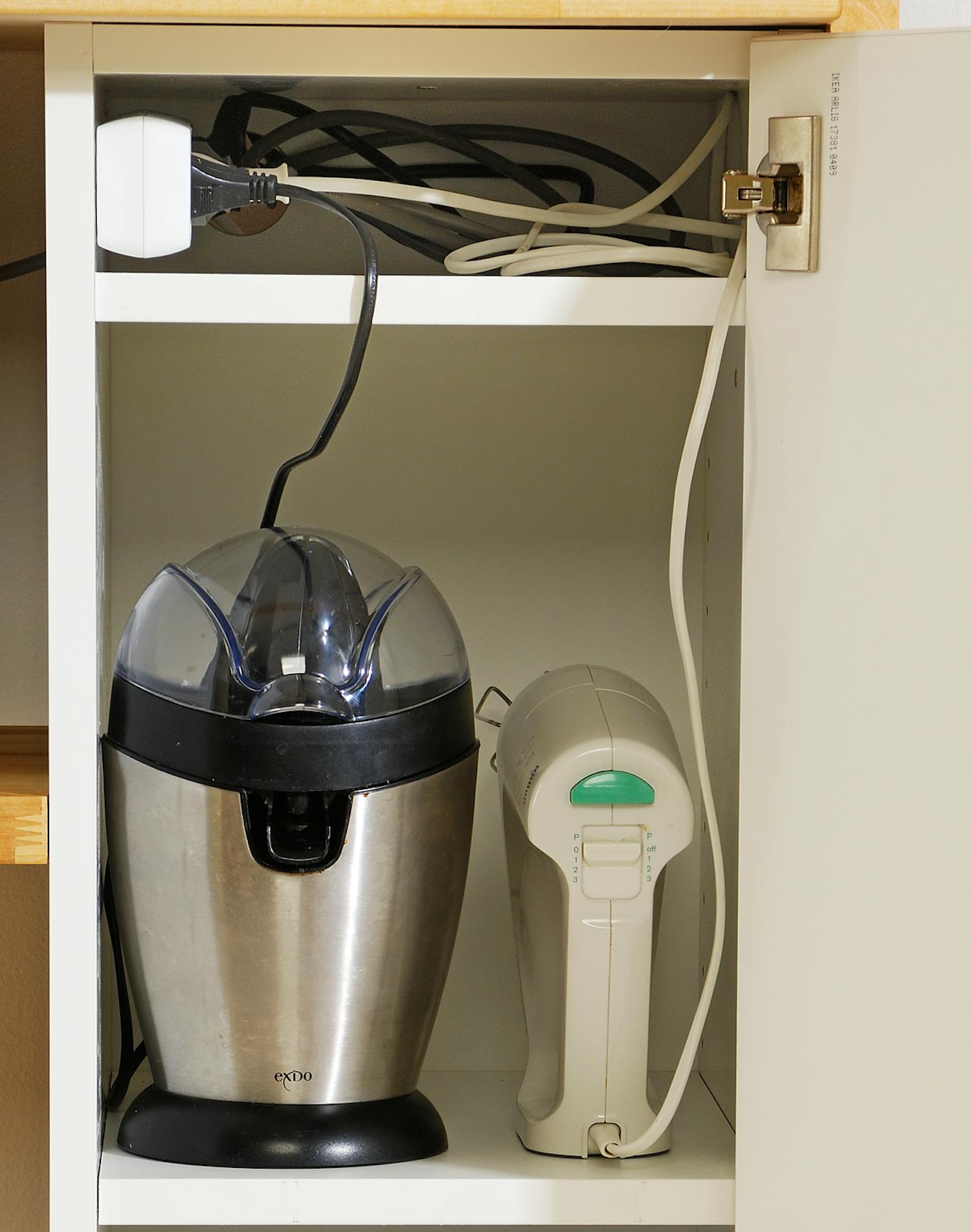 Kjøkkenmaskiner er kjekke, men de tar stor plass. Hvis jeg setter dem bort i et skap, må ledningen først vikles ut, før maskinene kan settes i kontakten. Finnes det en smartere metode?