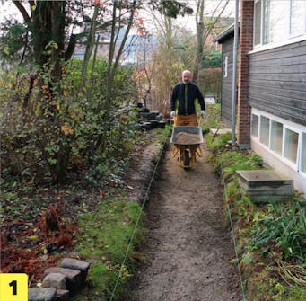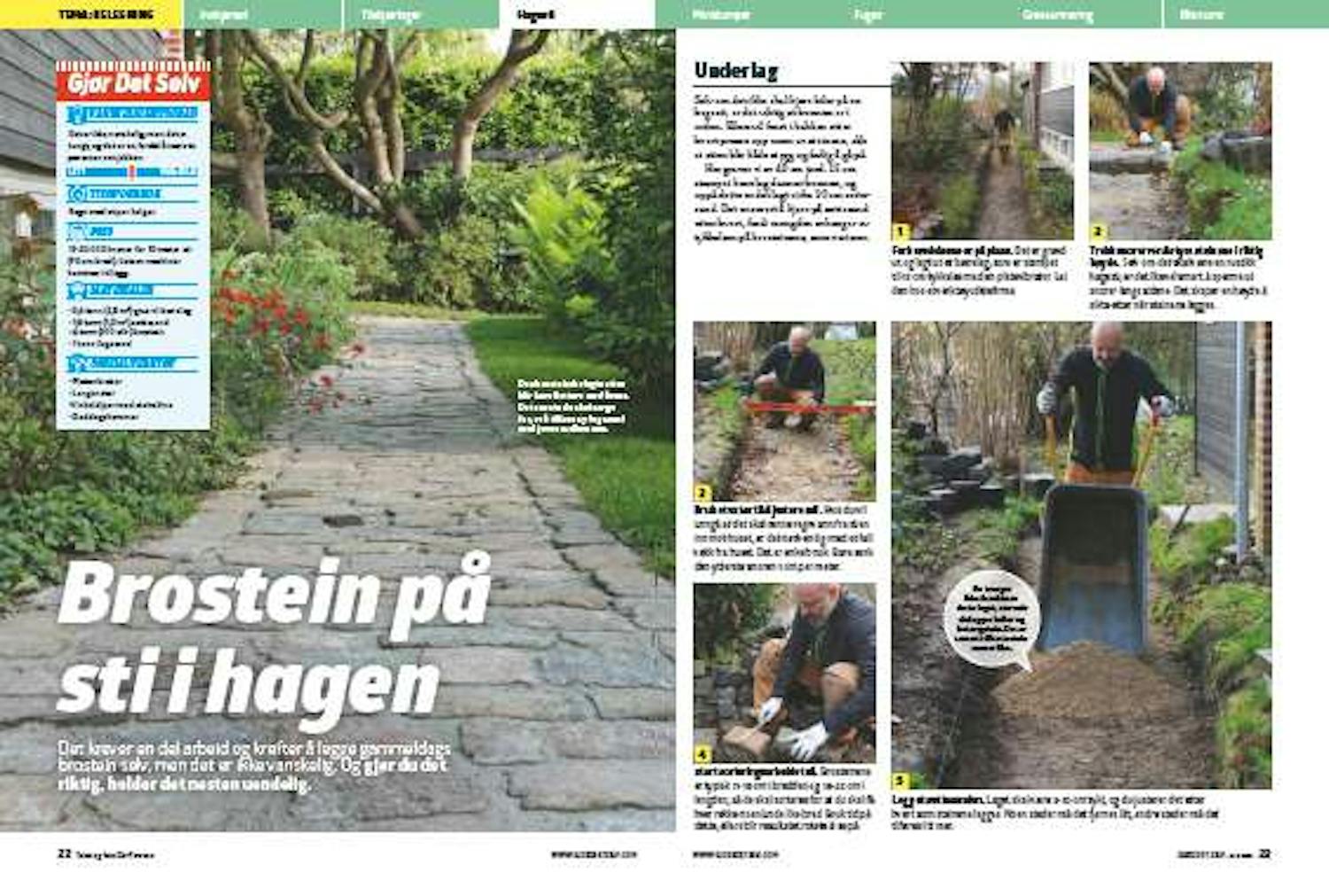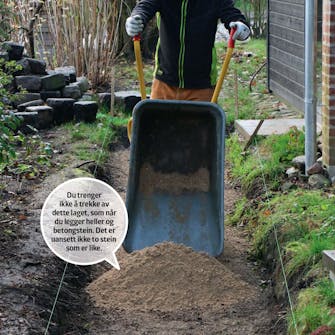 Selv om det ikke skal kjøre biler på en hagesti, er det viktig at bunnen er i orden. Ellers vil frost i bakken etter hvert presse opp noen av steinene, slik at stien blir både stygg og farlig å gå på.