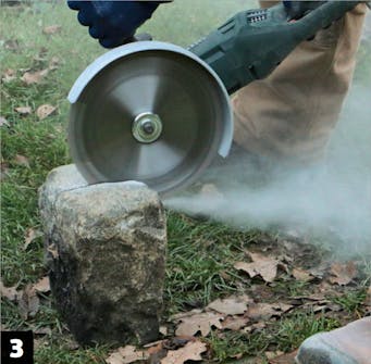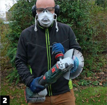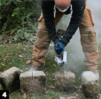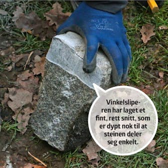Brostein er ikke bare å klippe med en steinsaks. Delingen krever en kraftig vinkelsliper med en spesiell steinskive.