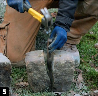 Splitt steinene. Sett en meisel ned i kuttet, og gi den et par slag med en kraftig hammer. Da splittes steinen. Husk fortsatt vernebriller. Det kan sprute små granittstykker når steinen splittes.