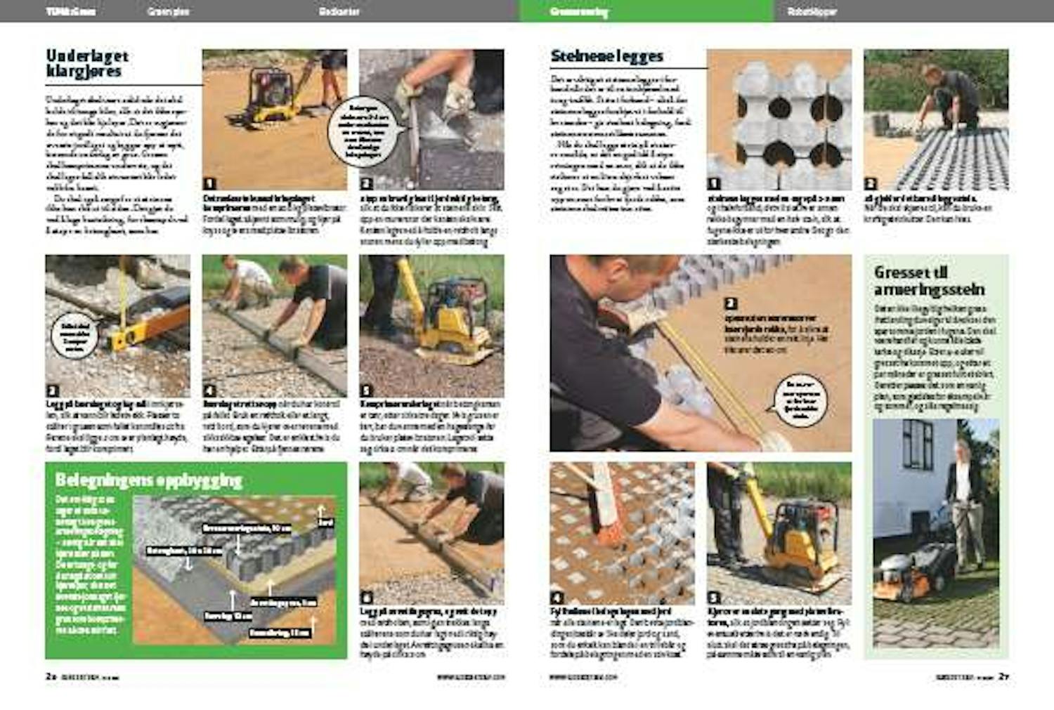Med gressarmeringsstein får du en sterk innkjøring som er lett å vedlikeholde, og som kan suge store mengder regnvann. Se hvordan underlaget bygges opp, og hvordan steinene legges.