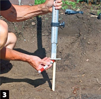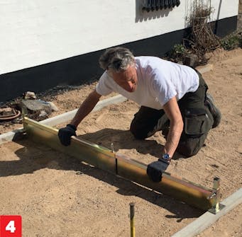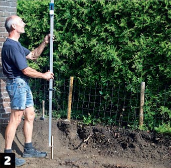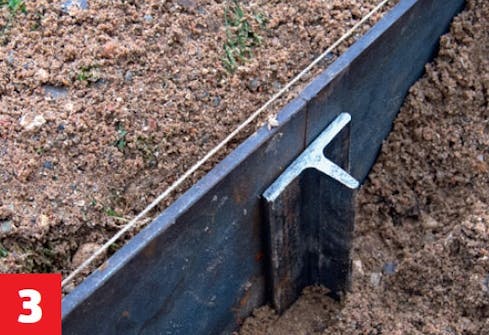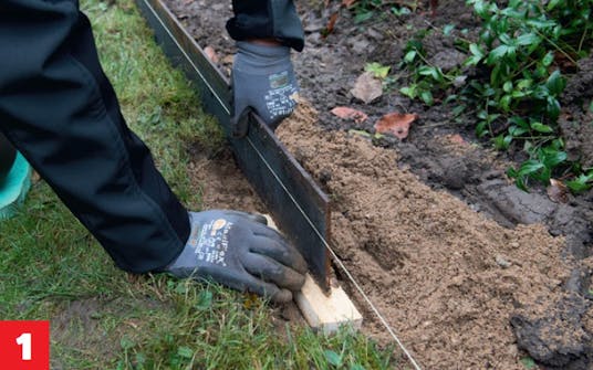 Grav en renne, og plasser jernkanten på en trekloss, slik at den er enkel å justere etter snoren som markerer overkanten på bedet.