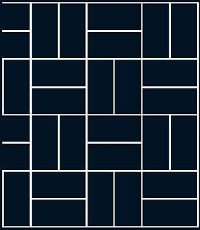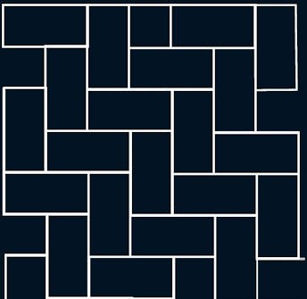 DOBBELTKVADRAT – steinene legges to og to sammen, slik at de danner et kvadrat som på skift vendes i hver sin retning. Her er det også gjennomgående fuger.