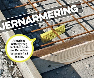 Armeringsnettet gir seg når hellen belastes. Det redder betongen fra å knekke.