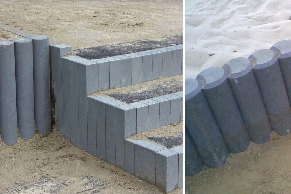 Og små og store L-formede kantsikringer til større prosjekter som støttemurer kan fås i plast.