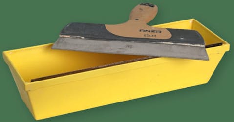 Når sparkelmassen slipes, bruker du en bred slipekloss med slipepapir korn 120 eller finere. Har du mer enn én enkelt vegg, lønner det seg å leie en spesiell slipemaskin, en såkalt giraffsliper, til jobben. Slipemaskinens runde slipetallerken gir etter litt øvelse raskt et jevnt, glatt resultat. Og husk - ikke slip før det siste laget er lagt på.