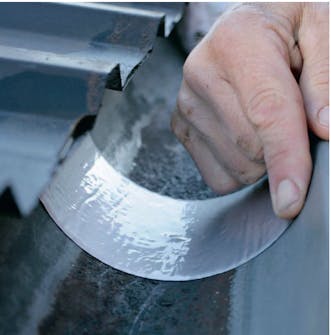 Denne typen teip brukes mest som tetningsmiddel til for eksempel takrenner, men den bru kes også når takfotbeslaget skal limes fast til undertaket. Teipen tørker aldri helt og forblir dermed fleksibel.