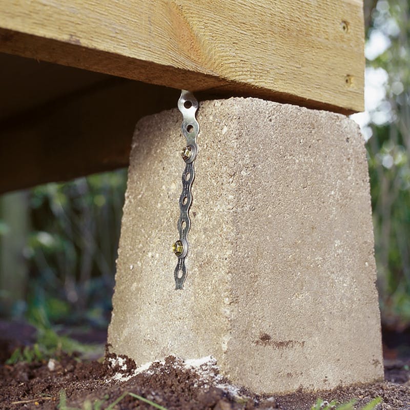 Hullbånd brukes for eksempel til å forsterke lekehus og små redskapsskjul. De må imidlertid IKKE brukes til å forsterke og forankre takstoler eller større fasader eller i bolighus. Her må du bruke spesielle vindtrekkbånd som er mye sterkere og som er i samsvar med byggeforskriftene.
