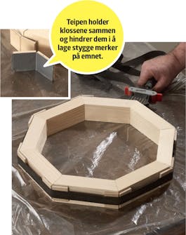 Å lime seks- eller åttekantede rammer er ikke så enkelt. Det er nemlig vanskelig å opprettholde et stabilt trykk på alle flatene mens limet tørker.