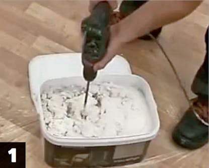 Påfør massen med en murskje, og glatt den helt ut. Laget skal ikke være mer enn et par millimeter tykt. La det tørke, fukt det, og påfør enda et tynt lag.