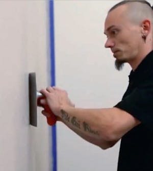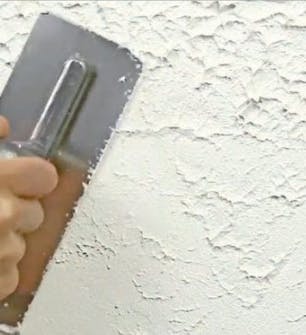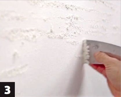 Tegn mønsteret. Bruk en sparkel, og hold den i en 90 graders vinkel, mens du tegner et mønster i massen. Glatt etterpå overflaten med et stålbrett. La veggen tørke i 12 timer, og slip med slipepapir i korn 120.