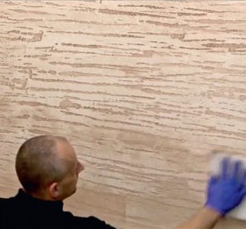 Veggen forsegles med voks. For å få en helt glatt og speilblank overflate, trekkes ett eller flere lag Primacol Voks på veggen. Poler overflaten etterpå.