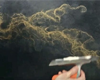Sparkelmassen trekkes på i et tynt lag med et stålbrett. Sørg for å kjøre brettet i forskjellige retninger, slik at det skapes mønstre. Gjenta med tre lag.