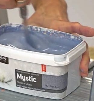Mystic er en maling som gir en ganske overveldende effekt til veggene. Malingen består av blant annet små fargepartikler, som får veggen til å glitre.